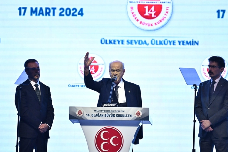 MHP Genel Başkanı Devlet Bahçeli, Ankara Spor Salonu'nda düzenlenen ve tek aday olarak 1295 delegenin tamamının oyunu alarak yeniden Genel Başkanlığa seçildiği Milliyetçi Hareket Partisi 14. Olağan Büyük Kurultayı’nda konuştu.