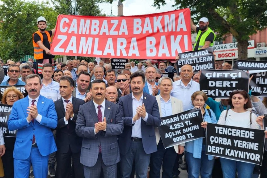 İYİ Parti Bursa İl Teşkilatı, iğneden ipliğe ardı arkası kesilmeyen yüksek zamları Fomara Meydanı'nda zamları protesto etti. “Cambaza bakma zamlara bak!” pankartının açıldığı basın açıklamasında konuşan İl Başkanı Selçuk Türkoğlu, “Bıçak kemiğe dayanmadı, resmen acımasızca saplandı” dedi. Türkoğlu, “Milletin gerçek enflasyonu yüzde 300’ü geçmiş, hangi cambazı getirirseniz getirin, vatandaş artık kanmıyor. Cambaz falan değil, sandığı getirin!” şeklinde konuştu.