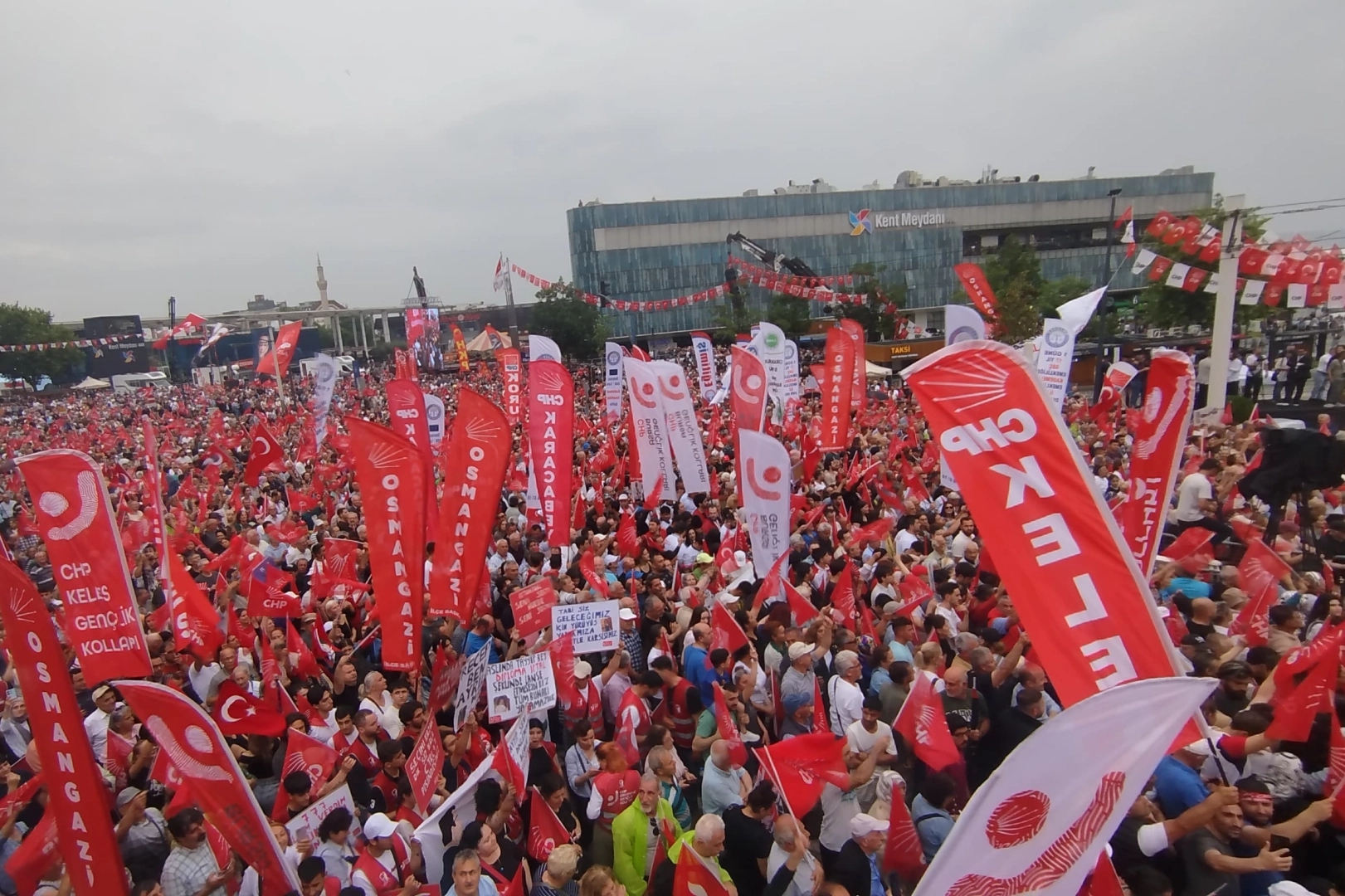 Cumhuriyet Halk Partisi'nin "Millet İradesine Sahip Çıkıyor" mitingi bugün (25 Mayıs 2025) Bursa'da düzenleniyor. Kent Meydanı'nda düzenlenen mitinge Bursalılar yoğun ilgi gösterdi.