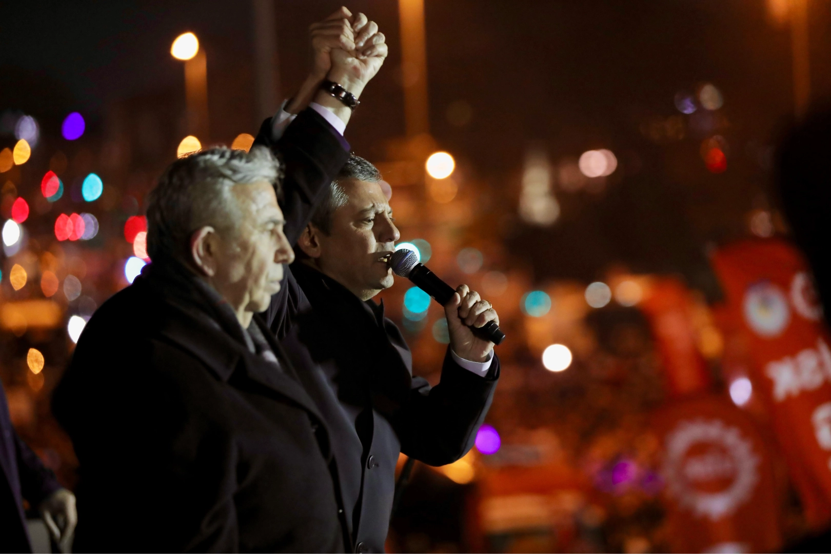 TBB ve İBB Başkanı İmamoğlu’nun gözaltındaki ikinci gününde Saraçhane’de gerçekleştirilen halk buluşmasında konuşan Özel, özetle şunları söyledi:
