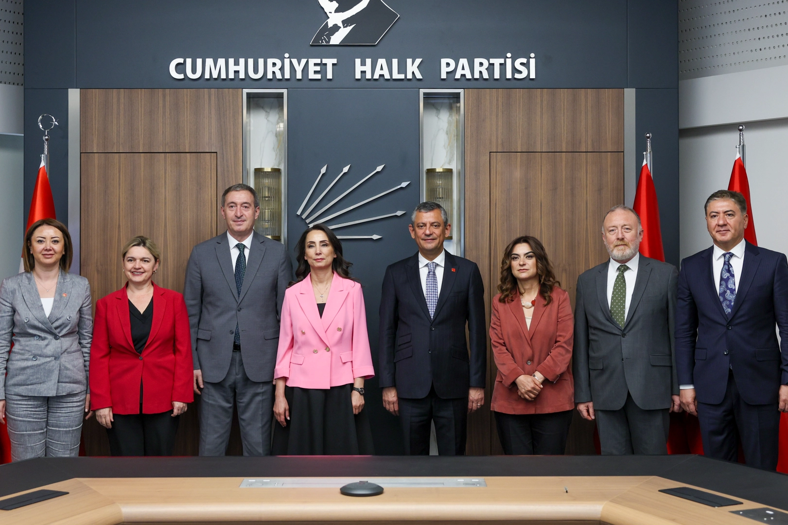 DEM Parti Eş Genel Başkanları Tülay Hatimoğulları ve Tuncer Bakırhan başkanlığındaki DEM Parti heyeti, terör örgütü PKK’nın fesih kararının ardından başlattığı siyasi parti ziyaretleri kapsamında CHP Genel Merkezi'nde CHP Genel Başkanı Özgür Özel başkanlığındaki heyet ile görüştü.