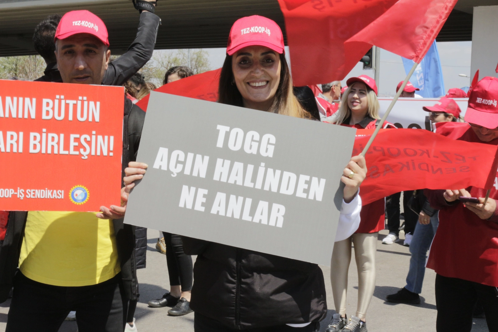 “Savunma işçisine sefalet zammını gören, grevini erteleyenler, şimdi de övüne övüne üstüne Türkiye yüzyılını inşa ettikleri TOGG'u üreten işçileri kapıya polis dikerek, eşyalarını almasına izin vermeden, telefon ile arayarak aniden işten çıkarmayı reva görüyor” diyerek açıklamasını sürdüren EMEP, birleşik mücadele çağrısı yaparak şunları kaydetti: “Bu yerli ve milli Türkiye yüzyılının içinde emeği ile alın teri ile geçinen işçi ve emekçiler değil; doymak bilmez sömürücülerin kâr hırsı var. İşten atmalara ve grev yasaklarına karşı birleşik mücadele etmekten başka çaremiz yok. İş güvencemiz ve geleceğimiz için birleşelim.”