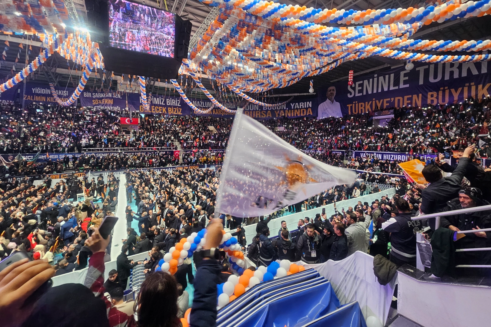 AK Parti Genel Başkanı ve Cumhurbaşkanı Recep Tayyip Erdoğan, partisinin il kongresi ve BTSO'nun Ekonomiye Değer Katanlar Ödül Töreni için Bursa'ya geldi. AK Parti Bursa İl Başkanlığı'nın Tofaş Spor Salonu'nda gerçekleştirilen 8. Olağan Kongresi'ne, partililerin katılımı yoğun oldu. Dışarıda bekleyen otobüs yoğunluğu salonu dolduran insanların bir kısmının otobüslerle ilçelerden getirildiğini gösterdi.