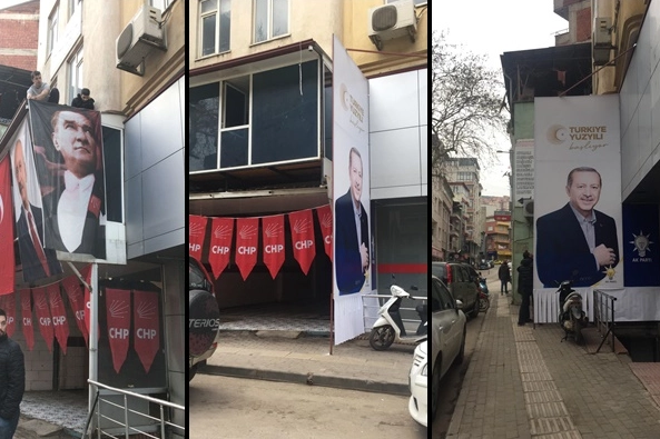 Adalet ve Kalkınma Partisi Orhangazi İlçe Başkanlığı, üzerinde AKP Genel Başkanı Recep Tayyip Erdoğan’ın fotoğrafının bulunduğu reklam panosunu, bitişik binada açılan CHP seçim bürosunun önüne yerleştirdi. Bu duruma tepki gösteren CHP Orhangazi İlçe Başkanı Vural Çetin, “Atalar ne güzel söylemiş, korkunun ecele faydası yoktur. Siyaseten tekrarlamak durumundayız, korkunun siyasi akıbete de faydası yoktur” diye konuştu.