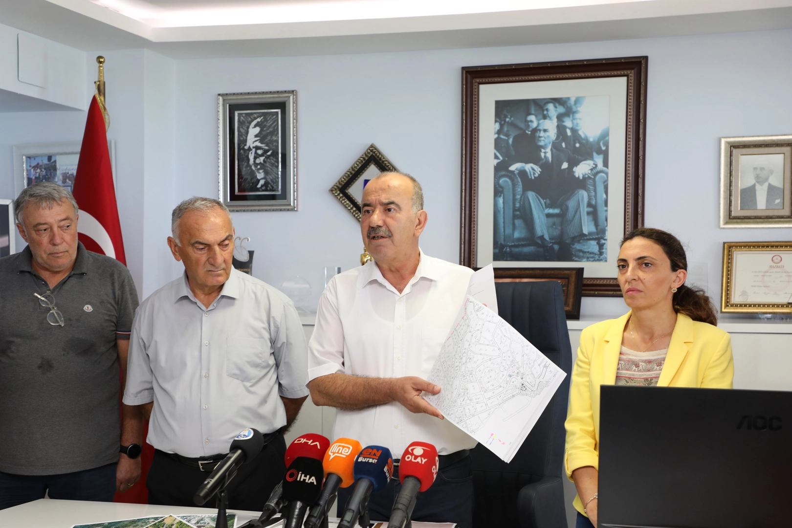 Mudanya Belediye Başkanı Hayri Türkyılmaz, ilçe genelinde etkili olan yağışlarla birlikte meydana gelen sel ve su taşkınlarının ardından basın açıklaması yaptı.