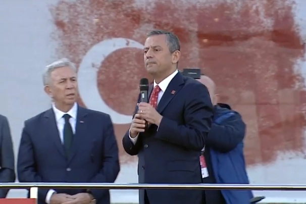 Cumhurbaşkanı Tayyip Erdoğan'ın ABD Başkanı Trump'tan onay alarak Ekrem İmamoğlu'nu tutuklattığını iddia eden Özel, "Öyle değilse çık bunun böyle olmadığını söyle" dedi. İktidar sözcülerinin muhalefete mandacılık suçlamalarında bulunduğunu söyleyen Özel, asıl mandacılığın okyanus ötesinden icazet almak olduğunu ifade etti. Erdoğan'ı 19 Mart darbesinin cunta başı olmakla suçlayan Özel, "Seni seçimlerde ne Trump ne ABD kurtarabilir" dedi.