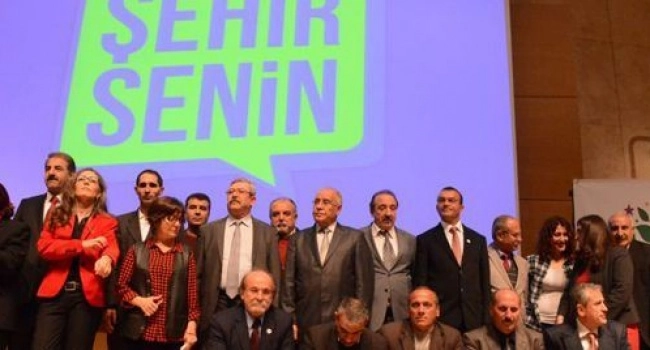 Evrensel'in haberine göre, 59 büyükşehir ve il belediye başkan ve eş başkan adaylarının isimlerinin açıklanacağı toplantıya, HDP eş genel başkanları Ertuğrul Kürkçü ile Sebahat Tuncel'in yanı sıra BDP Eş Genel Başkanı Selahattin Demirtaş, HDP milletvekilleri Levent Tüzel ve Sırrı Süreyya Önder, BDP milletvekilleri Mülkiye Birtane, Erol Dora, Adil Zozani, İbrahim Binici, SDP Genel Başkanı Rıdvan Turan, ESP Genel Başkanı Figen Yüksekdağ, İHD Genel Başkanı Öztürk Türkdoğan, KESK Genel Başkanı Lami Özgen, Eğitim Sen Genel Sekreteri Mehmet Bozgeyik katıldı. Salona ayrıca "Şehir senin" pankartı asıldı.