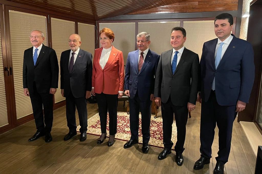 CHP Genel Başkanı Kemal Kılıçdaroğlu'nun daveti üzerine İYİ Parti Genel Başkanı Meral Akşener, Saadet Partisi Genel Başkanı Temel Karamollaoğlu, Gelecek Partisi Genel Başkanı Ahmet Davutoğlu, Demokrat Parti Genel Başkanı Gültekin Uysal ve DEVA Partisi Genel Başkanı Ali Babacan, Çankaya Belediyesi Ahlatlıbel Tesisleri'nde çalışma yemeğinde bir araya geldi.