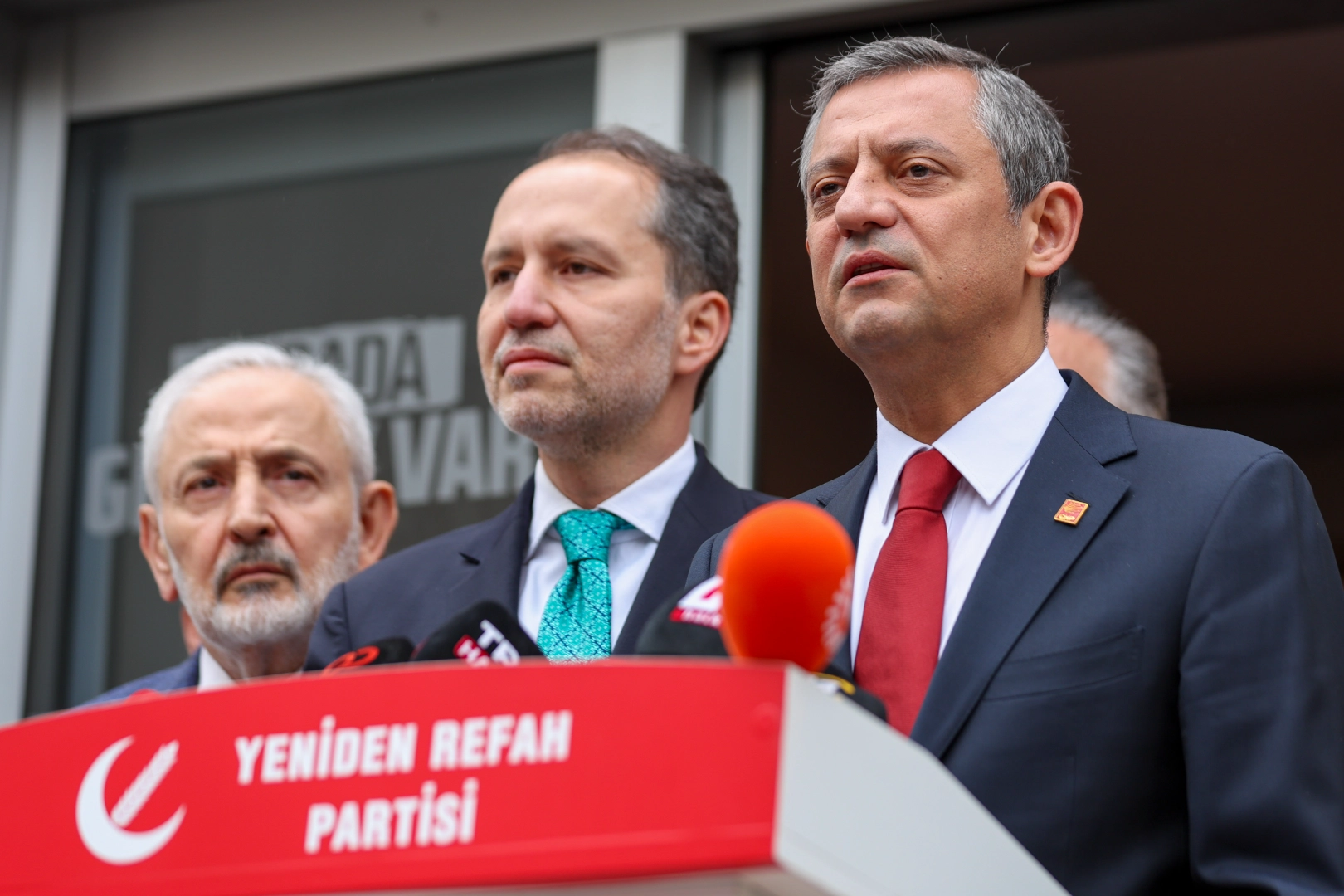 CHP Genel Başkanı Özgür Özel, siyasi parti ziyaretleri kapsamında Yeniden Refah Partisi Genel Başkanı Fatih Erbakan ile görüştü. Özel'e Genel Sekreter Selin Sayek Böke, Genel Başkan Yardımcısı Ensar Aytekin ve Sevgi Kılıç eşlik etti. Erbakan ve beraberideki heyet Özel'i kapıda karşıladı. Yeniden Refah Partisi Genel Merkezinde yapılan görüşmenin ardından Özel ile Erbakan açıklamalarda bulundu.