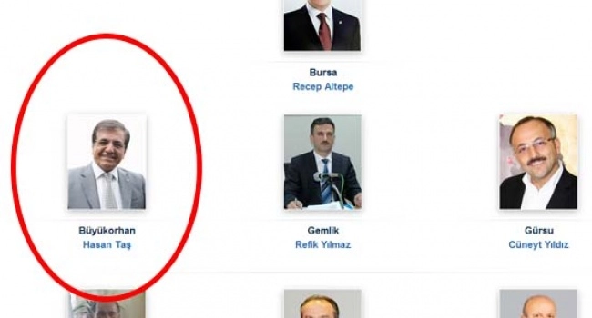 1 Aralık 2013'te İl Başkanlığı görevinden istifa ederek Büyükşehir Belediye Başkan Aday Adaylığı'nı ilan eden ancak aday gösterilmeyen Sedat Yalçın'ın fotoğrafı, 'Büyükorhan Hasan Taş' yazan yere konuldu.