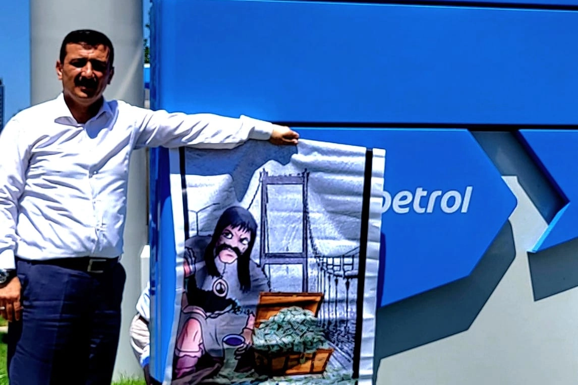 Bir benzin istasyonunda Deli Dumrul pankartı açan İYİ Parti Bursa Milletvekili Selçuk Türkoğlu, şunları söyledi: