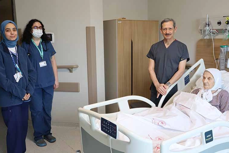 Nefes darlığı, kuru öksürük ve baş dönmesi şikâyetleri ile Bursa Şehir Hastanesi'ne başvuran 104 yaşındaki Embiye Kadıoğlu'nun kalbinde aort kapağı kalınlaşması ve darlığı tespit edildi. Tetkikleri gerçekleştiren Kardiyoloji Uzmanı Prof. Dr. Hakan Erkan, Kadıoğlu'nun ileri yaşına rağmen ameliyat kararı aldı. Hastane bünyesinde başarıyla gerçekleştirilen operasyon sonucu Kadıoğlu sağlığına kavuştu.