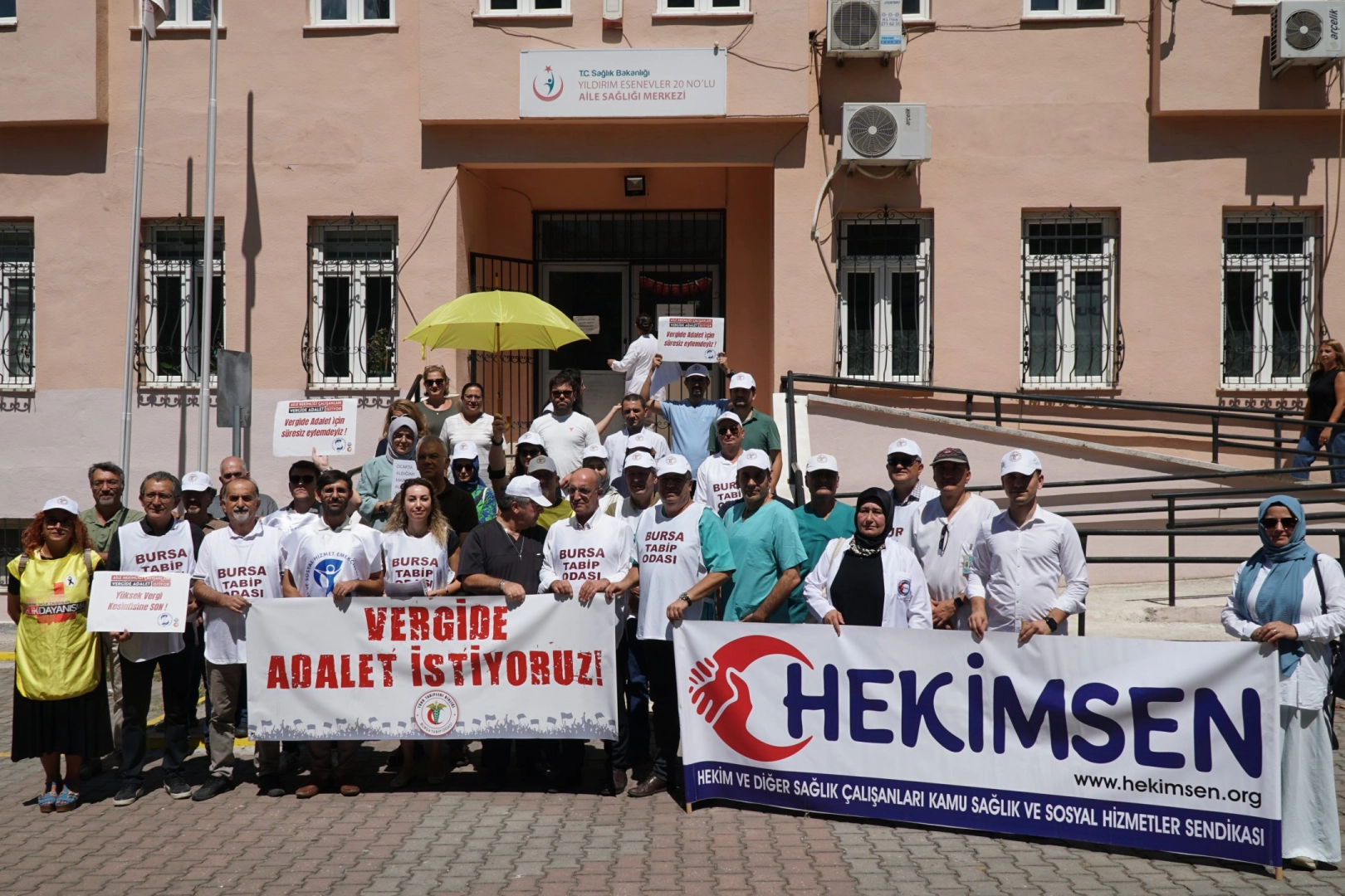 Bursa Tabip Odası tarafından düzenlenen ‘Vergide Adalet İstiyoruz’ konulu basın açıklaması, Esenevler Aile Sağlığı Merkezi önünde gerçekleştirildi.