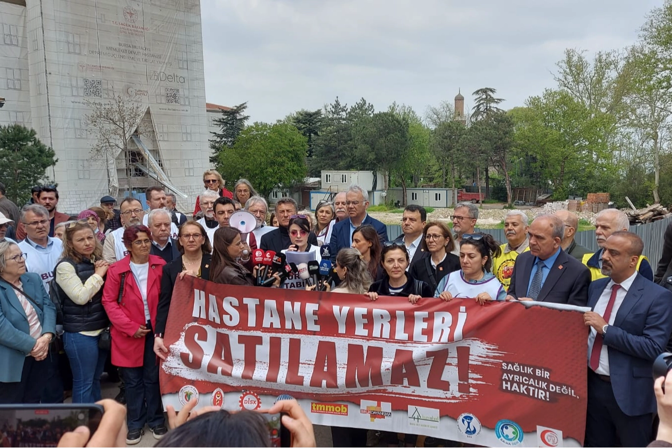Bursa Tabip Odası Başkanı Ferda Firdin tarafından okunan açıklamada, söz konusu satışların yalnızca birer arsa devri olmadığı, doğrudan halkın sağlık hakkını hedef aldığı vurgulandı. Açıklamada, “Bu mesele basit bir bina ya da arsa satışı değildir. Bu, devletin güvence altına almakla yükümlü olduğu sağlık hakkının halkın elinden alınmasıdır” denildi.