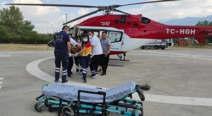 Bunun üzerine vakit kaybetmeden havalanan helikopter ambulans, hastayı ilçeden alıp şehir merkezine getirdi.