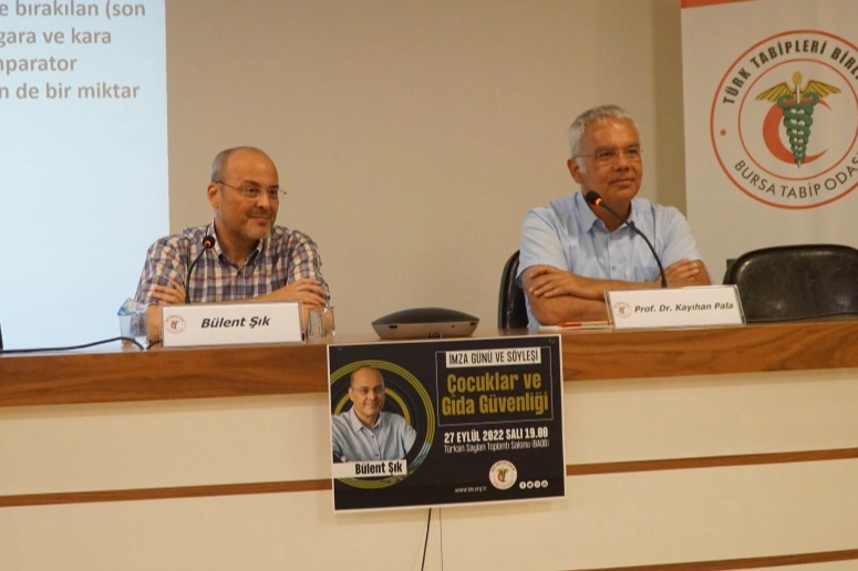 Gıda Mühendisi Dr. Bülent Şık, Bursa Tabip Odası'nın düzenliği etkinlikte son kitabı 'Çocuklar ve Gıda Güvenliği' üzerine konuştu. Şık, toksik kimyasal madde kirliliğinin çocuklar üzerindeki etkisine dikkat çekerek, konunun kamuoyunda yeterince yer almadığını söyledi.
