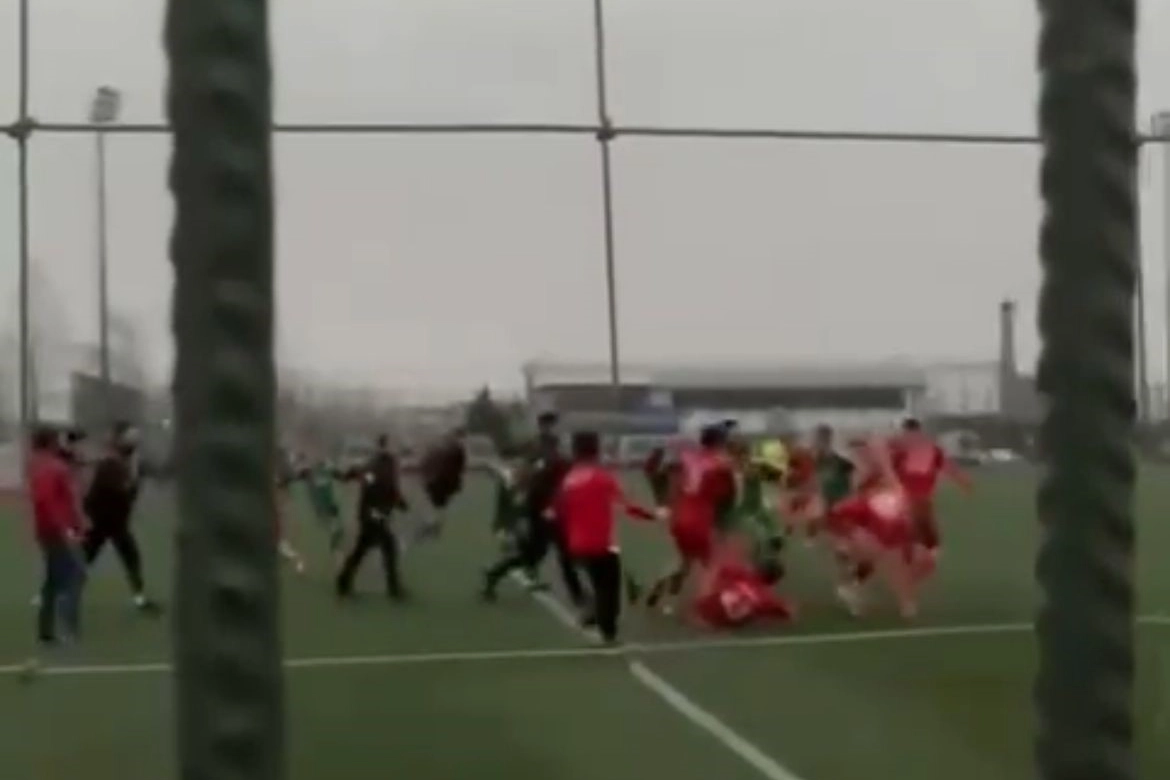 Maçın ilerleyen dakikalarında artan tansiyon sonrası tartışmaya başlayan oyuncular bir anda sahayı boks ringine çevirdi.