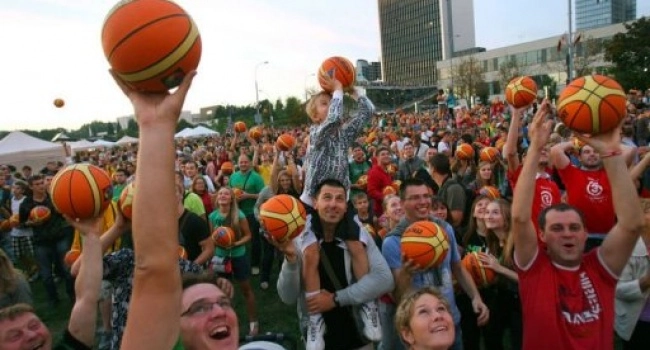Şampiyonanın yapılacağı şehirlerden Klaipeda'da 8 bin 300, Alytus'ta 6 bin, Siauliai'de 7 bin 250, Türkiye'nin grup maçlarını yapacağı Panevezys kentinde 7 bin 600, Kaunas'ta 11 bin ve Vilnius'ta 15 bin olmak üzere toplam 55 bin 150 kişinin, yaklaşık 5 dakika boyunca ellerindeki topları havaya atarak, bu alanda dünya rekoru kırdığı bildirildi.