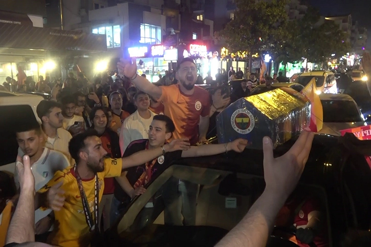 Türkiye'nin dört bir yanında olduğu gibi Bursa'da da taraftarlar maç sonrası meydanlara akın etti. Araçlarla korna çalarak şampiyonluk turu atan taraftarlar, ezeli rakibi Fenerbahçe'ye gönderme yapmayı da ihmal etmedi. Sarı-lacivert Fenerbahçe tabutu yapıp kutlamalarda şampiyonluk turu atan Galatasaraylılar, tabutun önünde dua edip sela okudu.