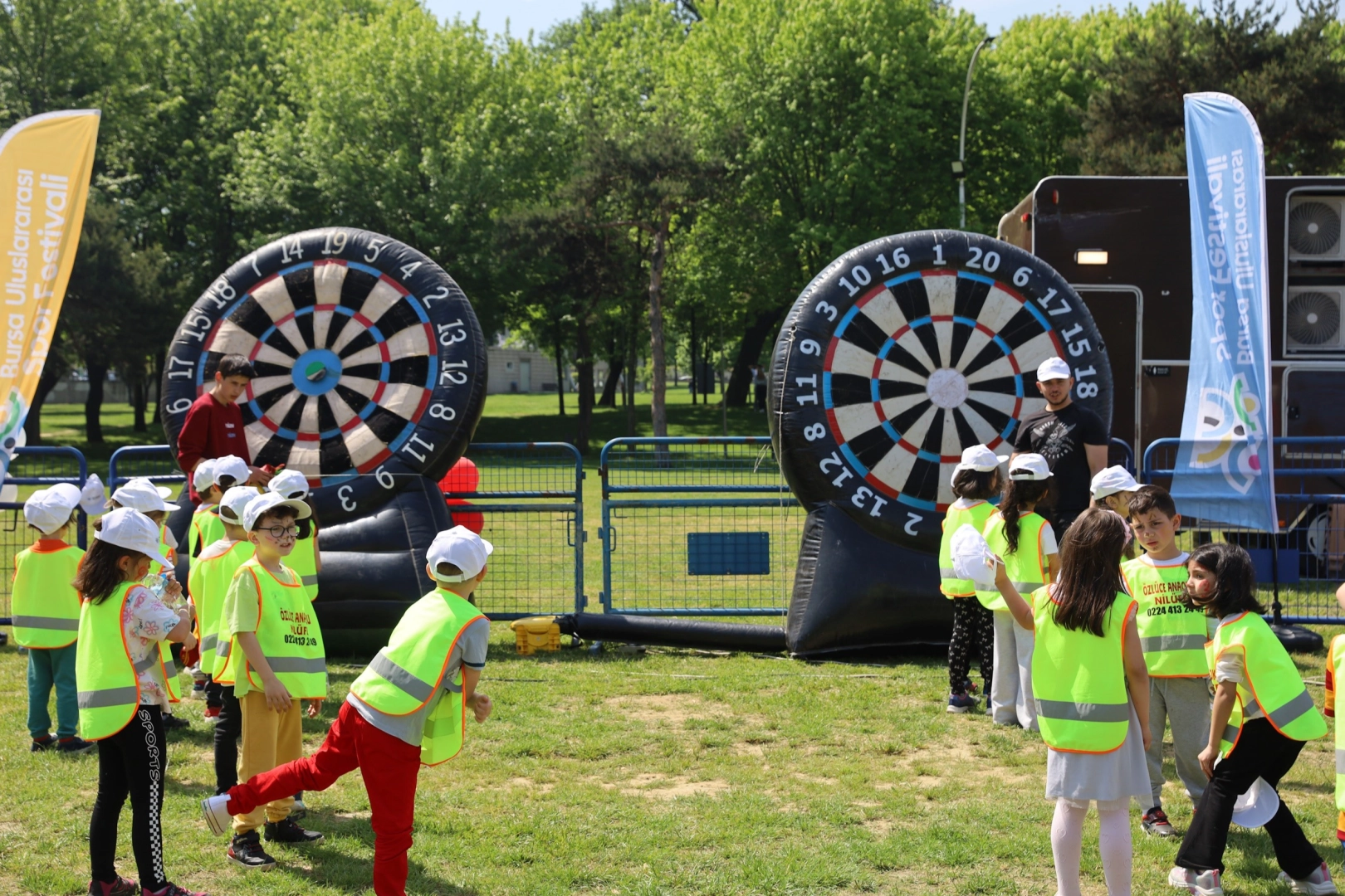 Bursa Valiliği ve Bursa Büyükşehir Belediyesi öncülüğünde Gençlik ve Spor İl Müdürlüğü, İl Milli Eğitim Müdürlüğü, Bursa Kent Konseyi ve Bursa Büyükşehir Belediyespor Kulübü iş birliğinde düzenlenen Bursa Uluslararası Spor Festivali, yediden yetmişe herkesi sporla buluşturmaya devam ediyor. Festival kapsamında Merinos Parkı'nda düzenlenen Anaokulu Şenliği'nde ise minikler hem eğlenceli hem de sporla iç içe bir gün geçirdi. Yüz boyamadan dans etkinliğine, darttan oyun parklarına kadar pek çok farklı alanda gönüllerince koşturup eğlenen çocuklar, unutamayacakları bir gün geçirdi.