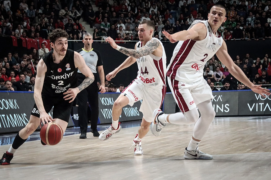 Maça her iki ekipte kontrollü başladı. Yiğitcan Saybir ve Onuralp Bitim ile etkili olan milli takım 7. dakikada farkı 6 sayıya çıkardı. (18-13). Bu dakikadan sonra Letonya pota altından ve çizgi gerisinden sayılar bulurken, milli takım ilk çeyreği 26-23 geride kapattı.