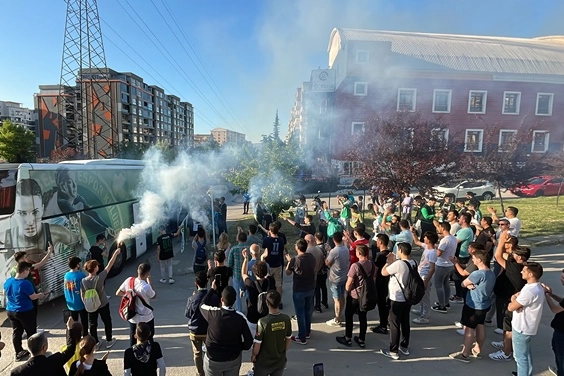 Nilüfer ilçesindeki Barış Spor Salonu ve Gençlik Merkezi'nin önünde toplanan taraftarlar, İtalya'dan dönen takımları lehine tezahüratta bulundu, yeşil ve beyaz renklerinde meşale yaktı.