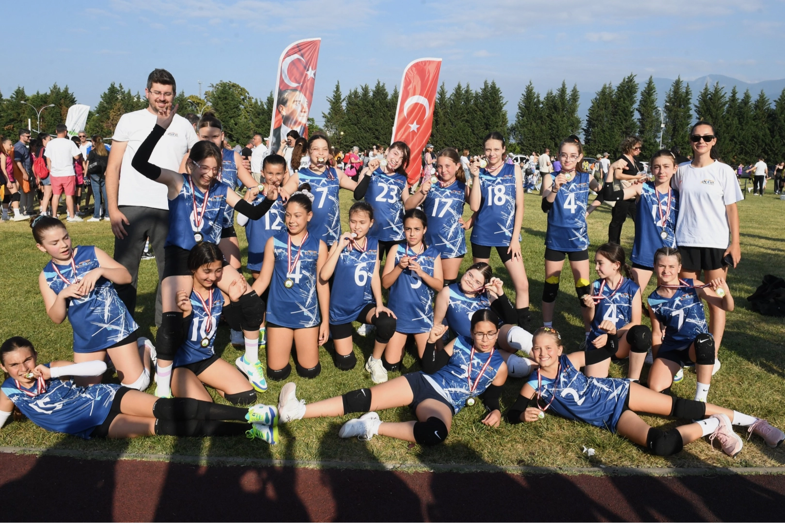 Osmangazi Belediyesi’nin Bursa Voleybol İl Temsilciliği ile birlikte düzenlediği Mini Voleybol Şenliği sona erdi. Sukaypark Tesisleri’nde kurulan mini voleybol sahalarında 3 gün boyunca gerçekleştirilen Mini Voleybol Şenliği’ne 2013-2014 ve 2015 doğumlu kız çocuklarından oluşan 132 takım katıldı. Kıyasıya mücadelelerin yaşandığı turnuvanın kazananı ise voleybola gönül veren 1500 kız çocuğu oldu. Mini Voleybol Şenliği’ne katılan sporcuların tamamı madalya ile ödüllendirildi. Turnuvaya katılarak hem spor yapma hem de unutulmaz anlar yaşama fırsatı bulan genç sporculara madalyaları, Osmangazi Belediye Başkanı Erkan Aydın ve eşi Nadire Aydın tarafından takdim edildi.