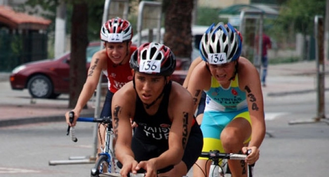 Triatler, lodosun neden olduğu dalgalarla mücadele ederken zor anlar yaşasalar da yarışı tamamlamayı başardı.