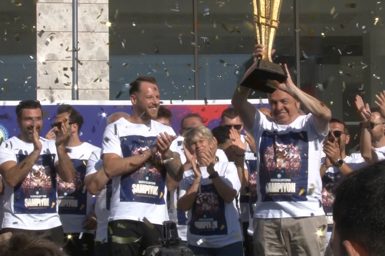 Tören sırasında Başkan Özdemir, takımın kadın başantrenörü İlknur Kurtuluş’a çiçek takdim ederek, tarihi başarısından dolayı tebrik etti. Ardından oyuncuları tek tek kutlayıp hediye verdi.