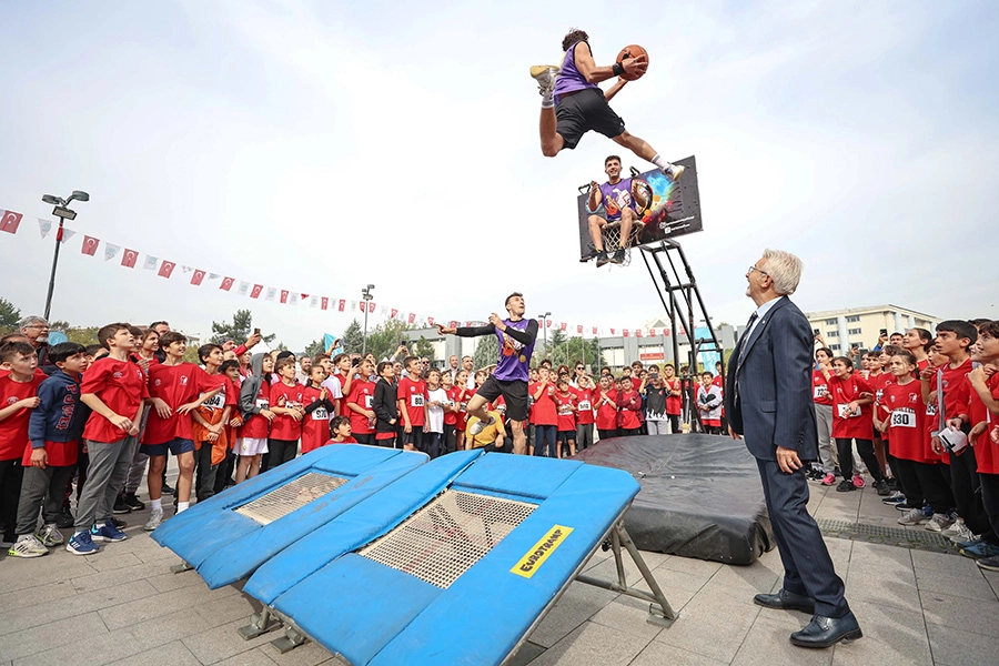 Meydanda öğrencileri sürpriz bekliyordu. Alanda düzenlenen Karizma Show ve tahta bacak gösteriler de koşuya katılan öğrencilere keyifli anlar yaşattı. Öğrencilerin bu eğlencesine eşlik eden Nilüfer Belediye Başkanı Turgay Erdem, Karizma Show’u, onlarla birlikte izledi.