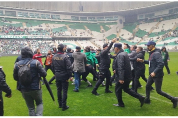 Bursa dünden bu yana Bursaspor-Amedspor maçının gerilimini yaşadı. Amed SF kafilesinin kaldığı otelin etrafında dün akşam Bursaspor taraftarları eylem yaparken bugün de maç öncesi sahada ısınma hareketleri yapan Amed SF futbolcuları saldırıya uğradı. Maç boyunca da Bursaspor tribünlerinden sahaya yabancı maddeler atıldı. Zaman zaman duran oyunda Amedli birçok oyuncuya sahaya fırlatılan maddeler isabet etti.