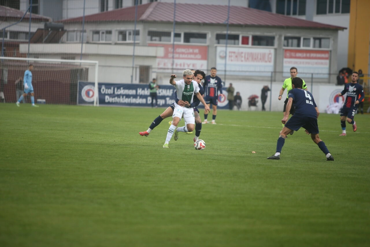 Fethiye İlçe Stadı’nda Karabük bölgesi klasman hakemi Mustafa Hakan Belder’in yönettiği mücadeleye iyi başlayan ve daha ilk dakikalardan itibaren rakip kalede baskı kuran yeşil beyazlılar, aradığı gole 16. dakikada Soner Aydoğdu ile ulaştı: 1-0.
