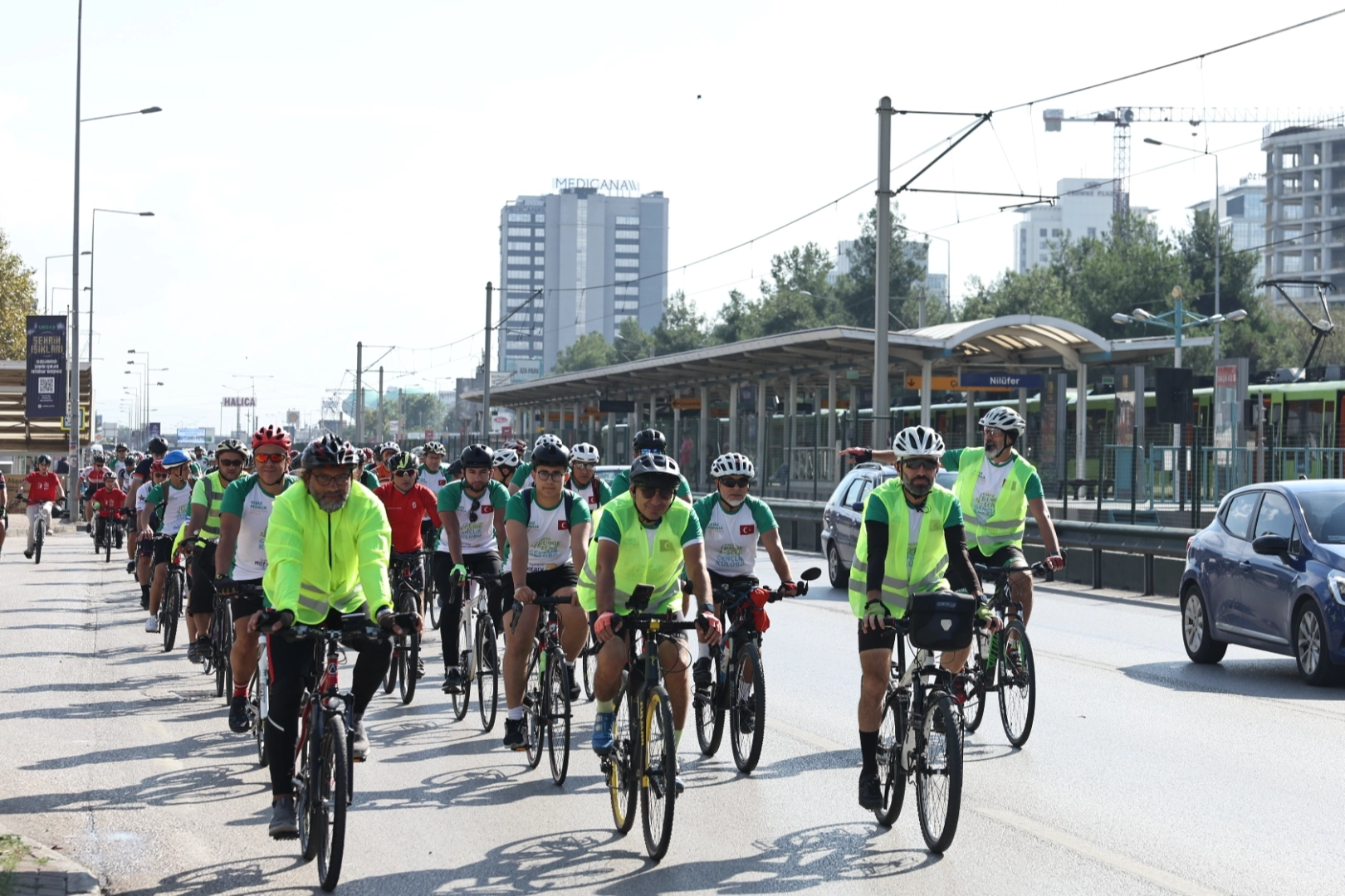 Nilüfer Metro İstasyonu, Fatih Sultan Mehmet Bulvarı üzerinden geçen bisiklet turu, Mudanya Mütareke Meydanı’nda son buldu.