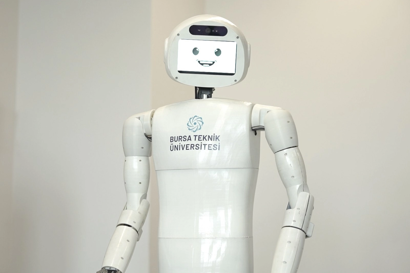 Bursa Teknik Üniversitesi Robot Teknolojileri ve Akıllı Sistemler Uygulama ve Araştırma Merkezi’nde yapay zekâ destekli insansı sosyal robot projesine imza atıldı. Mekatronik Mühendisliği Bölümü’nden proje yürütücüsü Dr. Öğretim Üyesi Nurettin Gökhan Adar ve yardımcı araştırmacı Dr. Öğretim Üyesi Mustafa Özden tarafından geliştirilen robotun, tasarım, imalat ve yazılım iş paketleri için Mekatronik, Elektrik-Elektronik ve Makine Mühendisliği bölümlerinden lisans ve yüksek lisans öğrencilerinden bir ekip oluşturuldu. Geçtiğimiz şubat ayında çalışmalarına başlanan robot, Türkiye’de akademik alanda bir ilk olma özelliği taşıyor. Yapay zekâ destekli sosyal mobil insansı robot, Yükseköğretim Kurulu (YÖK) Başkanı Prof. Dr. Erol Özvar’a da tanıtıldı. İnsanlarla etkileşime girme kabiliyetine sahip olan robotun tasarımı, imalatı ve yazılımının tamamı BTÜ bünyesinde gerçekleştiriliyor.