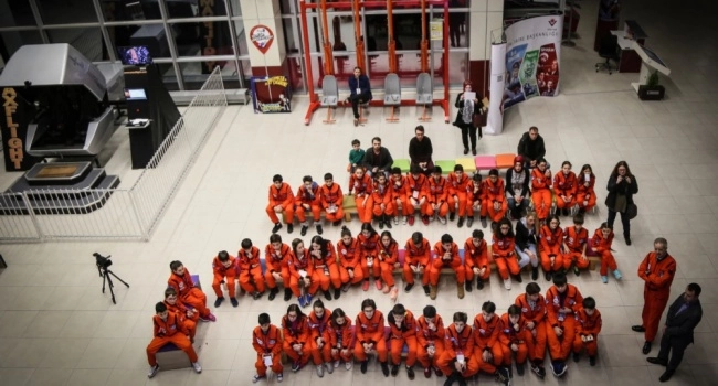 Yaşları 10-14 arasında olan yaklaşık 50 çocuk, Suriyeli astronot Muhammed Faris'in anlatımıyla Planetaryum'da uzayın derinliklerinde sanal olarak keşfe çıktı. Özel geliştirilmiş teknolojik aletlerle, Mars'ta yürüyüş yapan çocuklar, uzay bisikletine bindi.