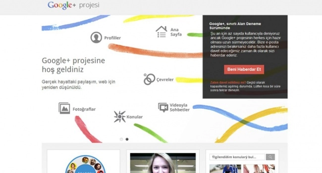 Şimdilik az sayıda kullanıcıya açılan Google+ projesinin fazla zaman geçmeden herkese sunulacağı söyleniyor. Test sürümü için e-posta adresini bırakanlara hesap açılabiliyor.