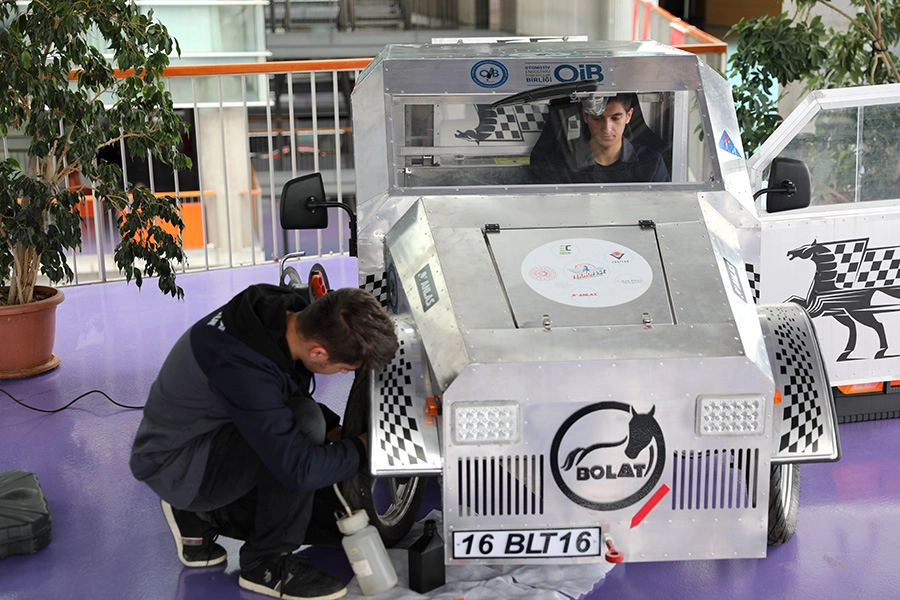 Öğrenciler, okulun atölyelerinde ürettikleri araca "Bolat" adını verdi. Şarj süresi 4 saat olan ve tam şarjla 60 kilometre yol katedebilen araç, geçen yaz TEKNOFEST'te güvenlik, yerli tasarım, elektrik güvenliği, mekanik kontrol ve dinamik sürüş konularında piste çıktı.