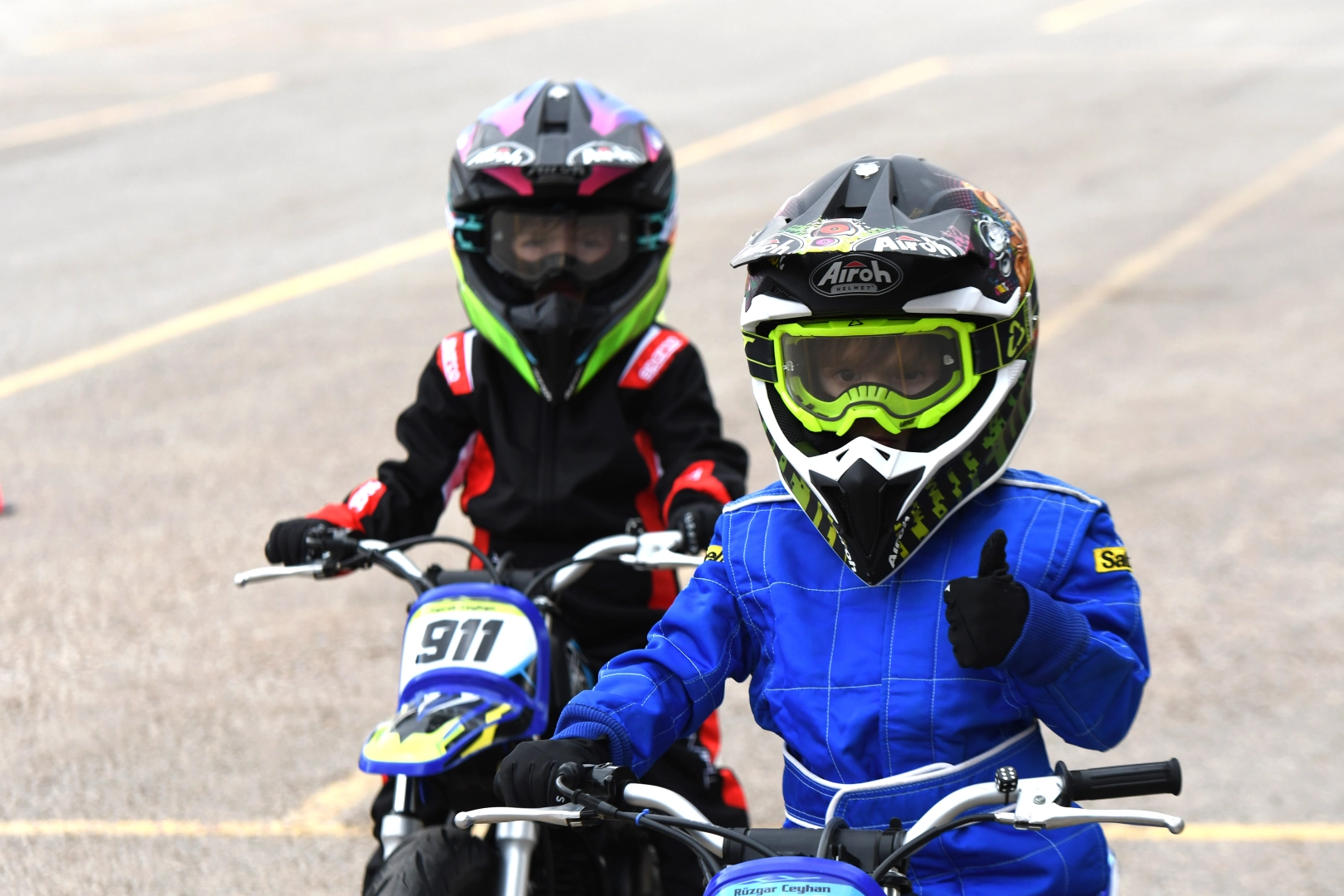 Motosiklet mekanikeri Serkan Ceyhan ve motosiklet eğitmeni Kübra Ceyhan çiftinin oğulları 6 yaşındaki Rüzgar ve 5 yaşındaki Toprak, babalarının mesleği dolayısıyla iki tekerlekli araçları çok erken kullanmaya başladı.