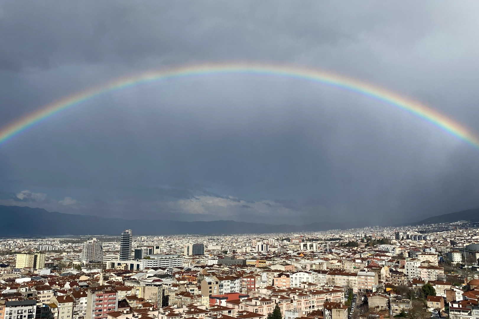 Şehrin birçok noktasından görülebilen gökkuşağı, özellikle yüksek binalar ve Uludağ silüetiyle birlikte kartpostallık görüntüler oluşturdu.