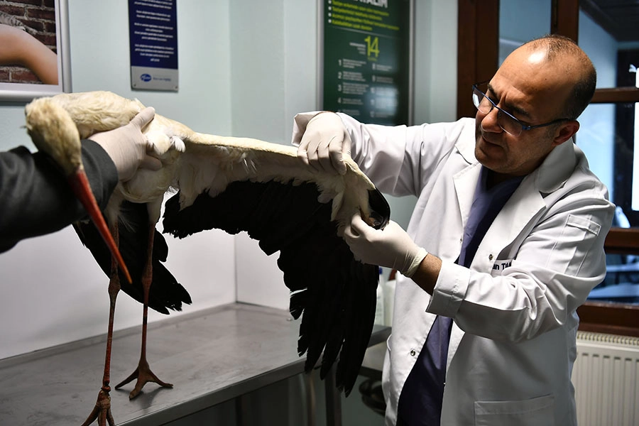 Sakatlanmış ve yaralı leyleklerin bakımının yapılması amacıyla 19'uncu yüzyılda kurulan ve Türkiye’nin ilk hayvan hastanesi olan Gurabahane-i Laklakan'da veteriner hekim tarafından sağlık kontrolü yapılan leyleğin bacağında ip dolanmasından kaynaklandığı tahmin edilen yara ile kanadında çarpma nedeniyle oluşan kırık olduğu tespit edildi.