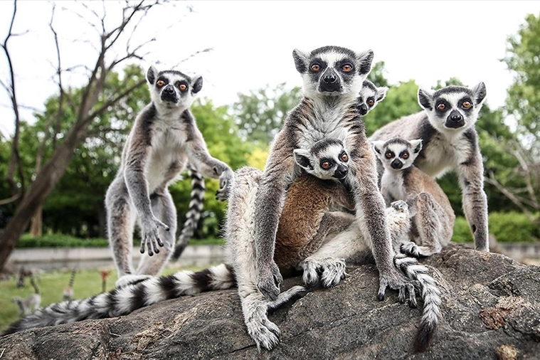 Türkiye'deki en kalabalık ailelerden olan Bursa'daki lemurlar bahar aylarında 10 yavru dünyaya getirdi. Ana vatanı Türkiye'ye 6 bin 500 kilometre uzaklıktaki Madagaskar olan lemurlar, hayvanat bahçesine 2009'da getirildi. O dönem sayıları 9 olan, geçen sene 12 dişi, 26 erkekten oluşan lemur popülasyonu yeni yavrularla 48'e yükseldi.