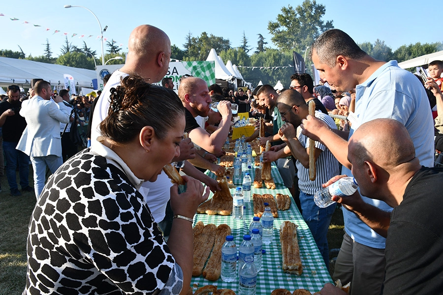 Merinos Parkı'ndaki festivalde "En Fazla Börek Yeme Yarışması"na başvuran 52 yarışmacı, ödül için kıyasıya mücadele etti.