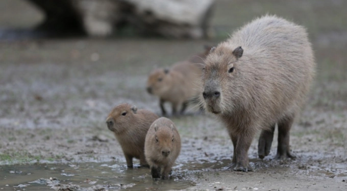 Kökeni Güney Amerika olan ve boyları yaklaşık 1,5 metreyi bulabilen kapibaralar, hem karada hem de su da yaşayabiliyor.