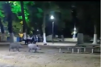 Bursa'nın Karacabey ilçesinde evlerin bulunduğu bölgeye inen yaban domuzları, parkta yiyecek aradı. Sıcak havadan bunalan vatandaşların da akşamları oturduğu piknik alanında cep telefonu kameralarına yansıyan görüntülerde, çocukların heyecanı ise dikkat çekti.
