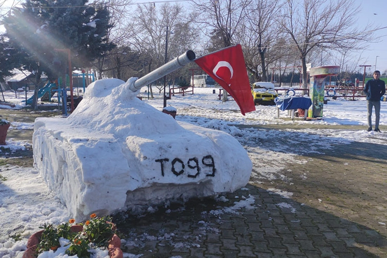 Yoğun kar yağışının ardından, İznik Gölü sahilinde bulunan Çınar Aile Çay Bahçesi'nin çalışanları eğlenmek amacıyla kardan tank yapmaya karar verdi. Yaklaşık 6 saatlik çalışma ile dev bir tank oluşturuldu.