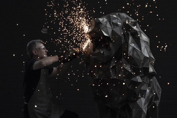 Her birinin büyüklüğü ve kaynak açıları farklı iki milimetre kalınlığında 1000'den fazla üçgen sac parçadan oluşan heykel, 12 kişilik ekibin işlerinden artan zamanlarda yapıldı.