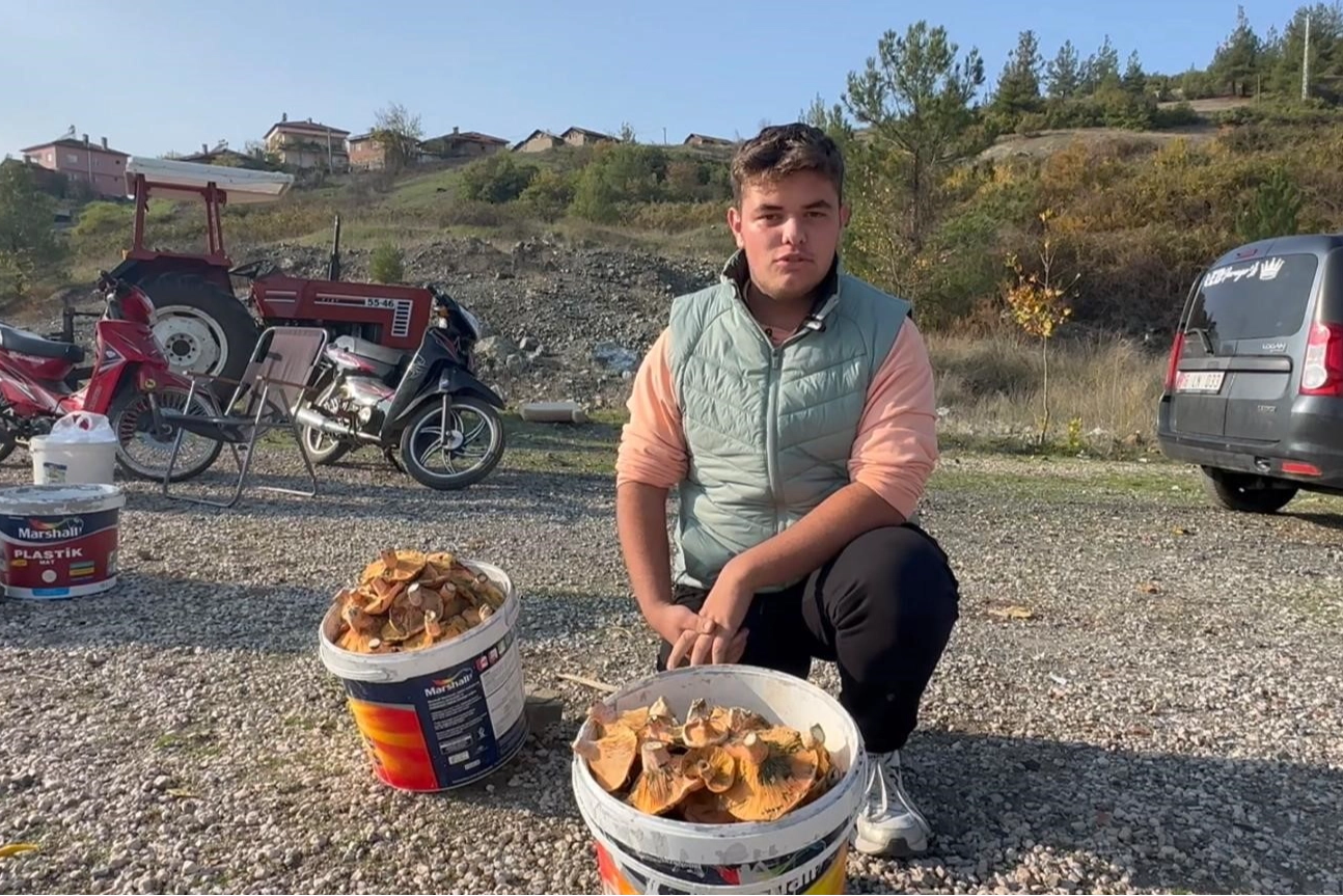 Bursa'nın Büyükorhan ilçesine bağlı Yörükler Mahallesi'nde oturan lise öğrencilerinden Efe Hakkı Oruç, ormanlık alanları dolaşarak topladığı mantarları satıyor, kendine okul harçlığı çıkarıyor.