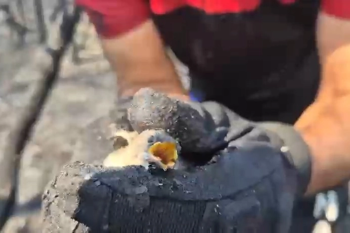 Bursa’da Yenişehir ilçesi Seymen Mahallesi’nde meydana gelen orman yangını sürüyor. Ekipler yangını söndürmek için çalışırken diğer yandan yanan bölgelerdeki canlıları kurtarıyor. Bursa Orman Bölge Müdürlüğü ve Nilüfer Arama Kurtarma (NAK) ekipleri yanan alandan yavru kuşu kurtardı. Şans eseri hayatta kalan kuş bölgeden hızla uzaklaştırıldı.