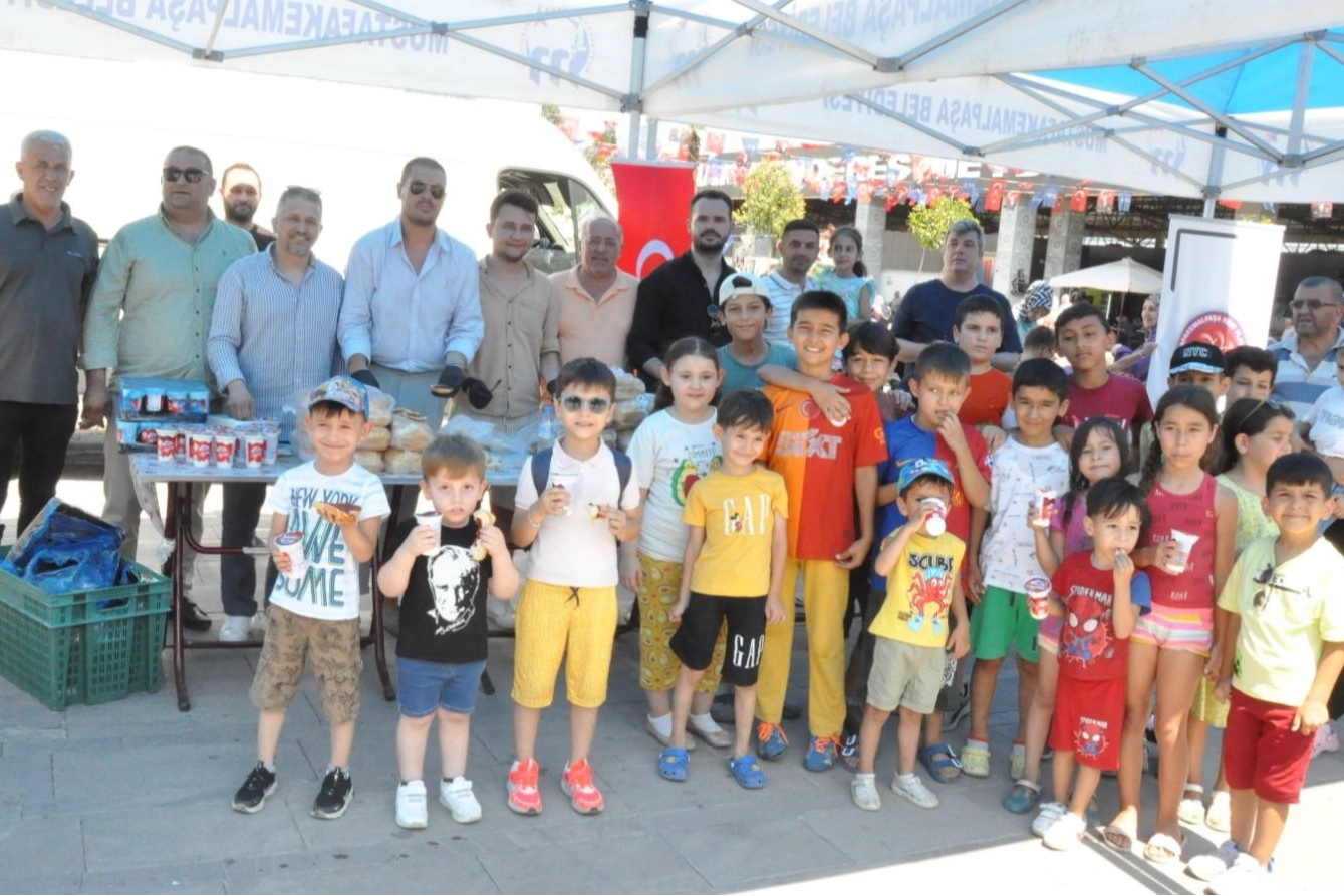 Adnan Menderes Meydanı’nda düzenlenen organizasyonda, çocuklara salçalı ekmek ve ayran ikram edildi, ardından yüzlerce çocuğa oyuncaklar dağıtıldı. Etkinlik, Mustafakemalpaşa Kent Platformu üyeleri ile Vatan Sevdalıları Platformu’nun ortaklaşa çalışmasıyla gerçekleşti. 2 bin adet salçalı ekmek, 5 bin ayran ve bin oyuncak, çocuklara ulaştırıldı. Renkli görüntülere sahne olan programa çok sayıda vatandaş da ilgi gösterdi.