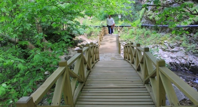 İlçe merkezine 6 kilometre uzaktaki kanyonda, tahta merdivenleri aşıp bendin üzerine çıkan ziyaretçileri yüksekliği 70 metreyi bulan kayalar karşılıyor.